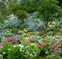 3万本のツバキ園、5万本のアジサイ園、しゃくなげ園など、季節ごとにさまざまな花が見られます。